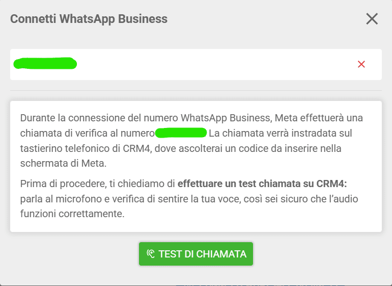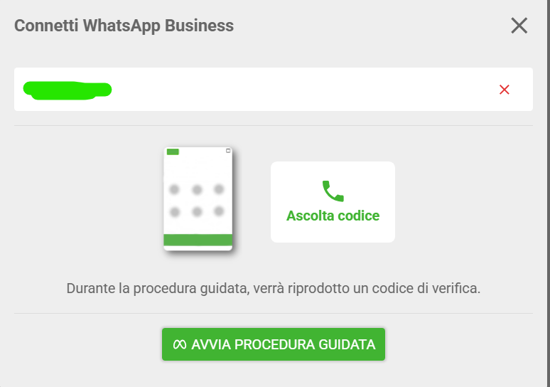 8. Dopo aver specificato questi dettagli sul tuo numero, inizia con la fase di integrazione:
